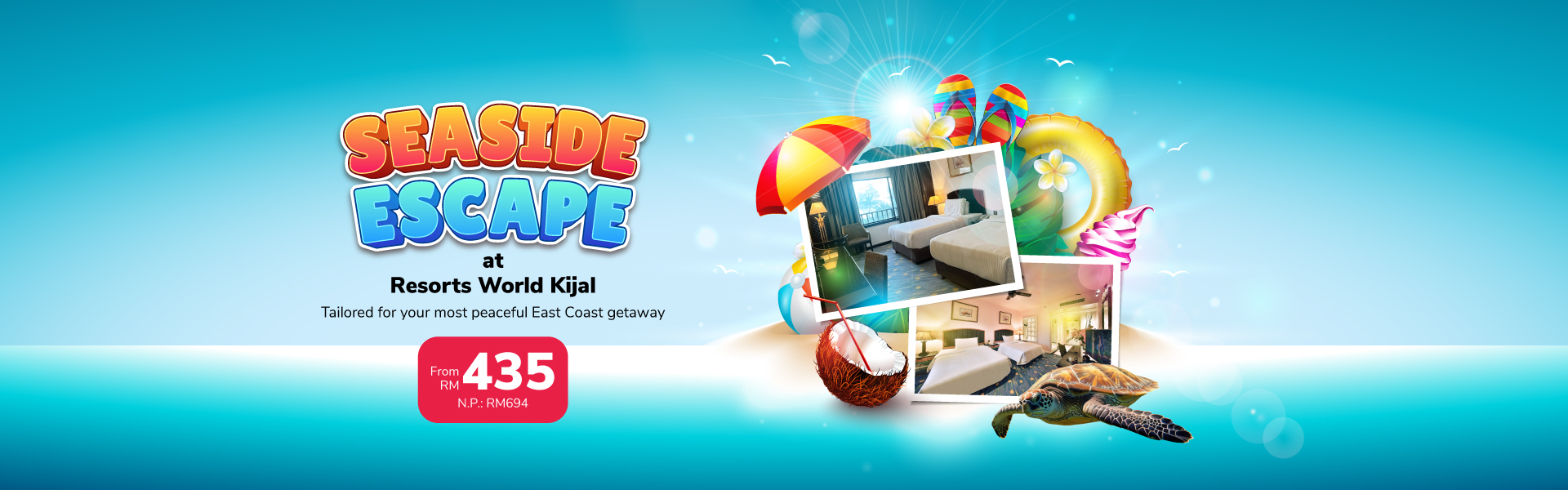 马上预订您的琪佳之旅,体验不受外界打扰的海边宁静生活。一夜熟睡之后,在宽敞的客房中悠然醒来,一睁眼就是让人心旷神怡的海景映入眼帘,心情也随着海风飞扬起来。在充满活力的自助早餐里饱餐一顿之后,您还可以使用 RM100 的餐饮额在度假村里享受其他的美食佳肴。无论您想品尝本地特色菜、热带海滨美食,还是休闲舒适的用餐环境,您即将迎接的是一趟华丽的美味探险。在这趟难得的惬意旅程里,就让海浪洗涤您的担忧、海风吹走您的烦恼,请放开心怀,尽情感受云顶世界琪佳的海岸魅力吧!